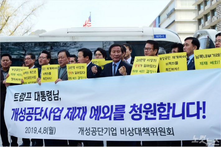 개성공단 입주기업 대표들은 "기업을 운영했던 트럼프 대통령이야말로 누구보다 (이같은 상황을) 잘 이해하리라 믿는다"며 "대통령의 결단으로 개성공단을 비롯한 남북협력사업에 대한 제재예외 결정을 내려주기를 청원한다"고 밝혔다.