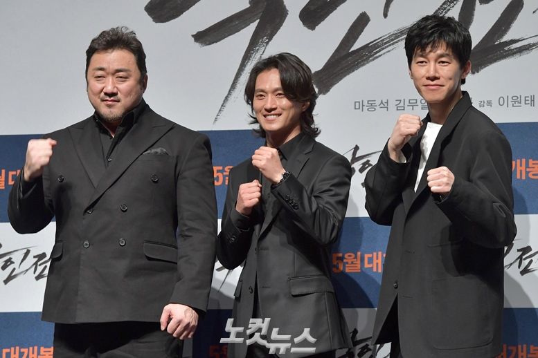 왼쪽부터 배우 마동석, 김성규, 김무열 (사진=박종민 기자)
