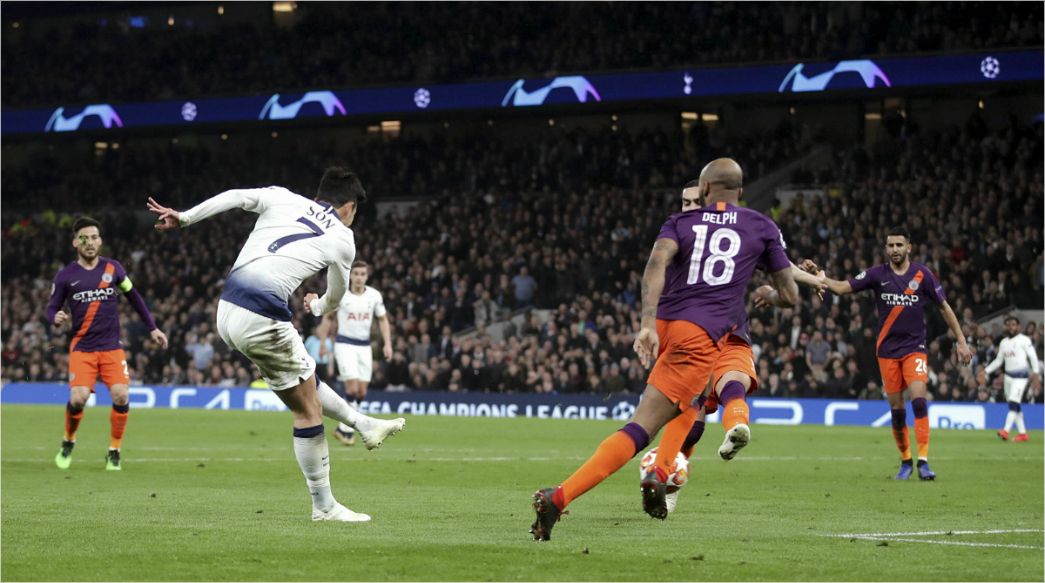 손흥민은 10일(한국시간) 영국 런던 토트넘 핫스퍼 스타디움에서 열린 2018-2019시즌 유럽축구연맹(UEFA) 챔피언스리그 8강 1차전 맨체스터 시티와 홈 경기에서 후반 33분 결승골을 터뜨렸다.