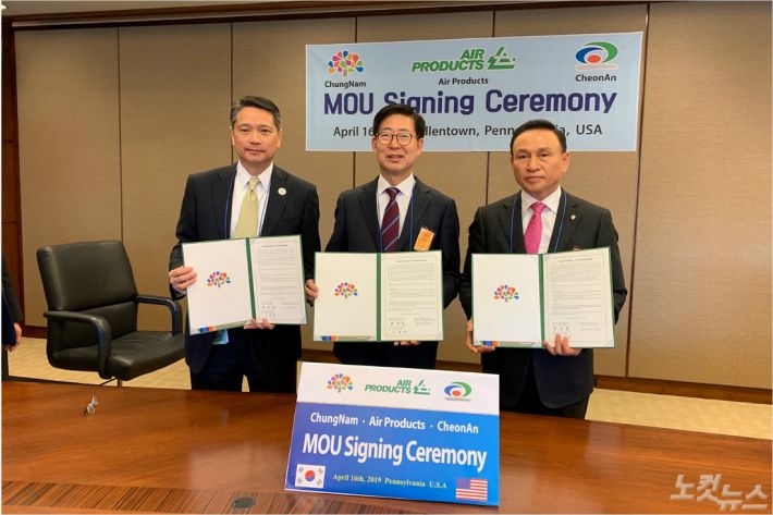 충남도와 천안시가 16일(현지시각) 미국 에어프로덕츠(Air Products)사와 3000만불(약 340억) 투자유치 협약을 체결했다.