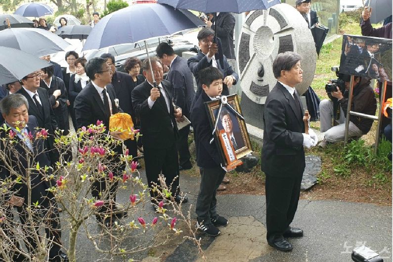추모객들은 비가 내리는 궂은 날씨에도 자리를 뜨지 않고 고인을 추모했다.