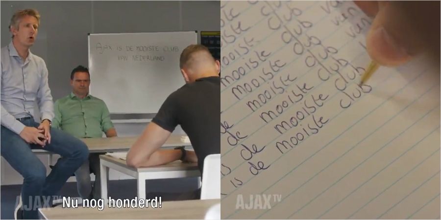골키퍼 켈 셰르펜(19)은 네덜란드 명문 아약스 입단에 앞서 반성문을 썼다. 판 데르 사르 사장과 마크 오베르마스 단장이 지켜보는 가운데 "아약스는 네덜란드 최고의 클럽입니다"라는 문장을 1000번이나 썼다. 흔히 말하는 '깜지'였다.