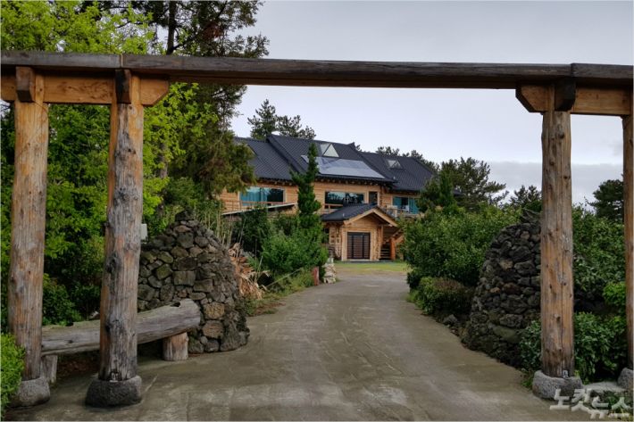 하지만 행정기관에 등록된 이 통나무주택의 용도는 ‘창고’. 과수원 관리 차원에서 컨테이너 나 콘크리트 블록으로 단순하게 지어도 될 걸 TV 드라마에 나옴직한 별장 용도의 전원주택 같은 모습을 띠고 있다.