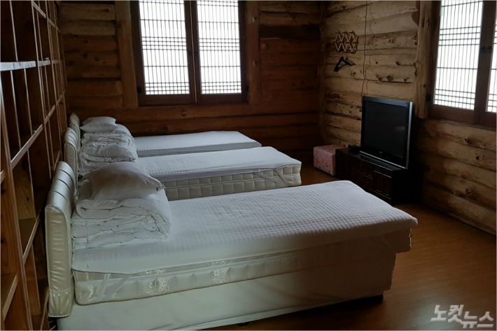 침대가 놓여 있는 객실. 적발된 이 농원은 이같은 객실을 5개 갖추고 있다.