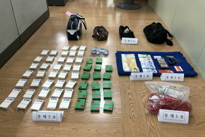 경찰 조사 결과 이들은 현금 400만 원과 3500만 원 상당의 칩을 이용해 화투 패를 맞추는 속칭 '아도사끼' 도박을 벌였다.