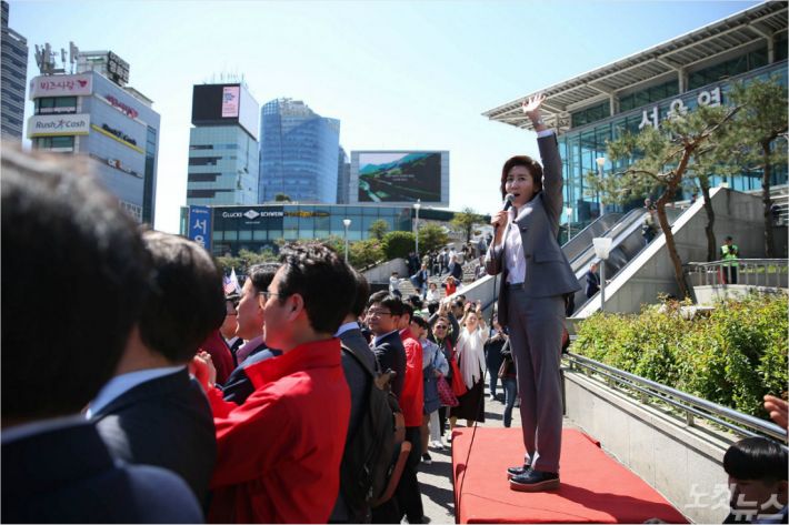 자유한국당 나경원 원내대표가 지난 2일 오전 서울역 광장에서 ‘문재인 STOP! 서울시민이 심판합니다!’ 규탄대회를 갖고 발언을 하고 있다. (사진=황진환 기자)