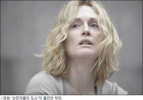 20일 개봉되는 영화 ''눈먼자들의 도시''의 여주인공 줄리언 무어가 국내 극장가에서 200만 관객을 불러모으며 인기 순항 중인 영화 ''이글아이''의 목소리 연기로 깜짝 출연하고 있어 화제다.