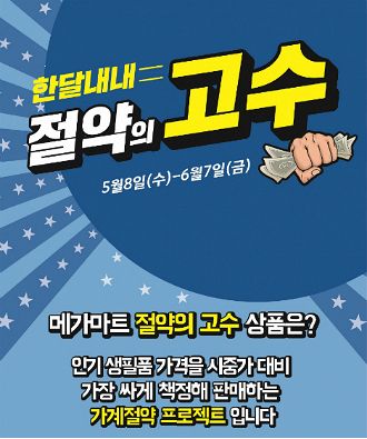 메가마트는 한달 내내 초저가로 판매하는 '절약의 고수' 상품을 선보인다고 밝혔다.