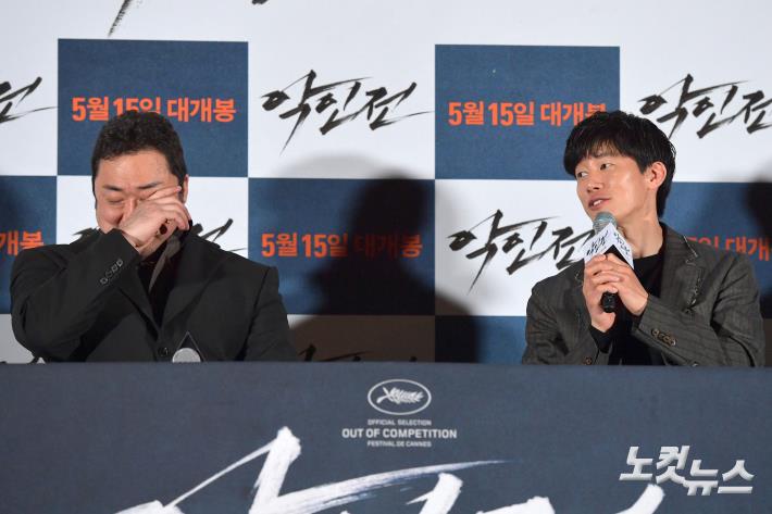 배우 김무열이 7일 오후 서울 용산CGV에서 열린 영화 '악인전' 언론시사회에서 취재진의 질문에 답하고 있다.