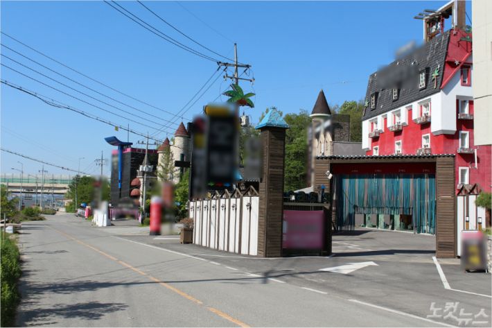 충북 청주시 가덕면에 우후죽순 들어서 있는 모텔. 최근 이 일대에 추가로 모텔을 신축하려는 움직임이 보이고 있다. (사진=청주CBS 최범규 기자)