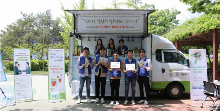 중소벤처기업부와 중소벤처기업진흥공단이 '청년재직자 내일채움공제'를 홍보하는 커피트럭을 다음달 5일까지 전국순회 운영한다.