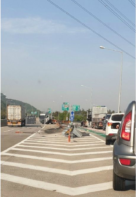 대전당진고속도로서 사고로 컨테이너 도로 막아…정체