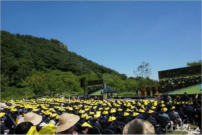 지난해 9주기 노무현 대통령 추도식엔 시민 1만 5000여 명이 운집했다.