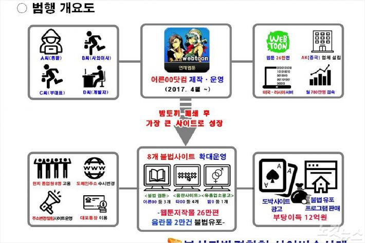 여기에다 현지인 8명을 고용해 웹툰 업로드와 음란물 관리를 맡기는 등 조직적인 운영에 나섰다.