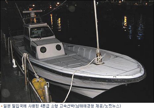 알선총책인 마 씨 등은 1억원을 주고 4톤짜리 소형 고속선박을 사들여 밀입국 사업을 시작한 것으로 드러났으며, 이 선박은 최대속력이 45노트로 일본 후쿠오카까지 3시간 안에 주파하는 한일쾌속선의 속도와 맞먹는 것으로 알려졌다.