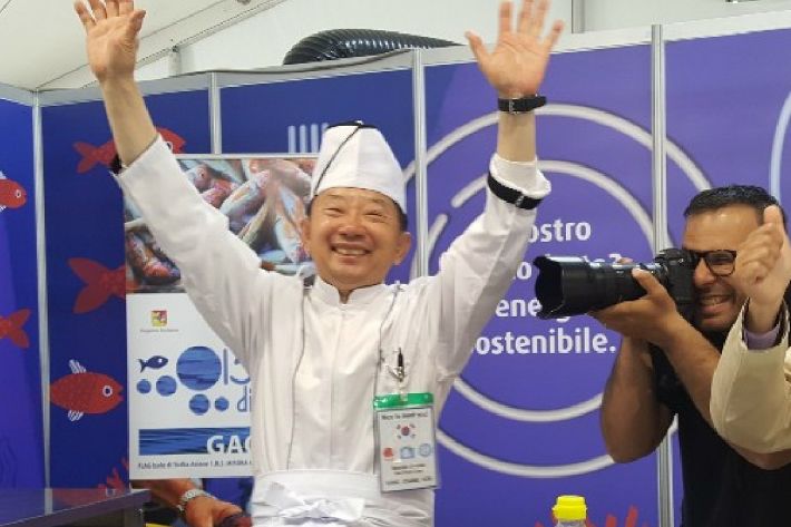이탈리아 제노아(Genova)에서 개최된 슬로피시 국제페스티벌에 초청된 제주 다금바리 명장 강창건 세프(사진=공동취재)