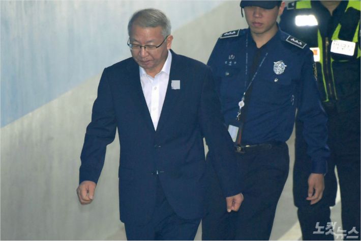사법행정권 남용 혐의로 구속기소 된 양승태 전 대법원장이 29일 오전 첫 공판이 열리는 서울중앙지법 법정으로 향하고 있다.