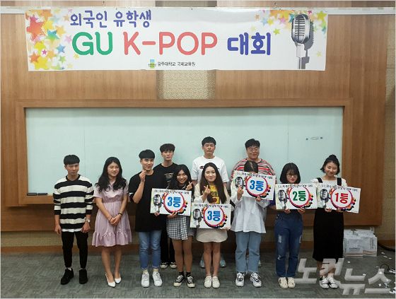 광주대 국제교육원이 개최해 올해로 2회째를 맞은 'GU K-POP 대회'는 외국인 유학생들의 한국어 능력 향상 및 동기부여를 위해 마련됐는데 학교 학부(과)생과 어학연수반 등 유학생 11개 팀이 참가해 열띤 경쟁을 펼쳤다.