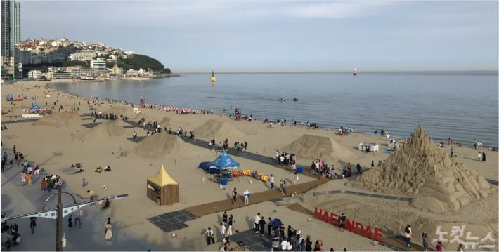 2일 부산시와 해운대구 등에 따르면, 이날 부산지역 해수욕장에는 10만 7천 명의 인파가 찾았다.