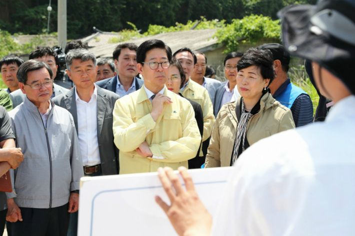 양승조 지사는 이날 노박래 서천군수 등 관계자가 참여한 가운데 유부도를 찾아 주민과의 대화의 시간을 갖고 유부도 갯벌 해양생태계 복원사업 현황을 살폈다.