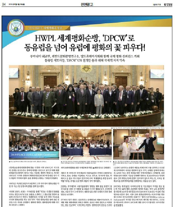광주일보는 지난 4월 9일에는 'HWPL 세계평화 순방, DPCW로 동유럽을 넘어 유럽의 평화의 꽃 피우다'는 제목으로 신문 마지막 면에 신천지 광고를 전면에 게재했다.