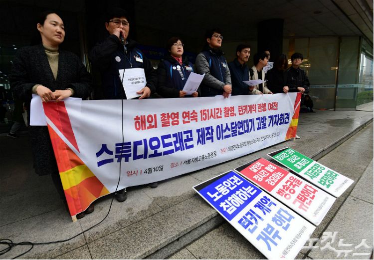 이어 스튜디오드래곤은 "개별 사업자로서 자체적인 노력과 함께 드라마제작사협회에 가입해 제작환경 개선을 위한 구체적인 방안을 모색 중"이라며 "현재 드라마제작사협회, 희망연대 방송스태프지부, 지상파 3사와 언론노조가 논의 중인 4자 회담에 당사도 협회 일원으로 참여하고 있다. 대표 단체 간 논의인 만큼 업계 전반에 영향을 미칠 수 있는 혁신적인 변화를 기대한다"라고 밝혔다.