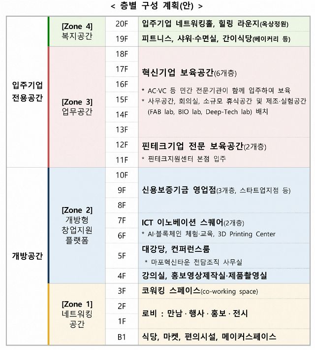 마포혁신타운은 신용보증기금의 옛 서울 마포구 사옥에 들어선다. 사옥은 내년 5월까지 리모델링을 마치고 혁신창업공간으로 탈바꿈하게 된다.