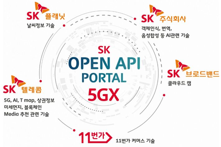 SK텔레콤과 SK㈜ C&C, SK하이닉스, SK플래닛, SK브로드밴드, 11번가, SK실트론은 각 사가 보유한 주요 서비스의 ICT 핵심 자산인 API를 공개하고 통합 제공하는 플랫폼인 'SK 오픈API 포털'을 구축했다고 26일 밝혔다.