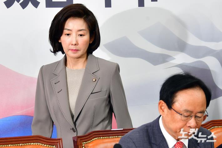 자유한국당 나경원 원내대표가 26일 오전 국회에서 열린 원내대표·중진의원 연석회의에 참석하고 있다.