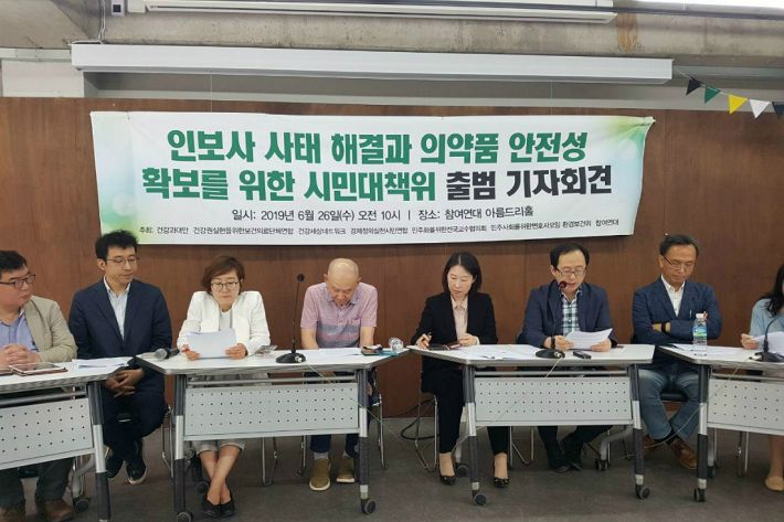 참여연대와 '건강권실현을 위한 보건의료단체연합' 등 시민단체는 이날 오전 서울 참여연대에서 '인보사 사태해결과 의약품 안전성 확보를 위한 시민대책위' 출범식을 갖고 인보사 투약환자들에 대한 추적조사를 코오롱과 식품의약품안전처에 맡겨서는 안된다고 주장했다.