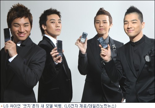 아이돌 그룹 빅뱅이 핸드폰 브랜드 LG 싸이언 ''엣지''폰의 새얼굴로 나섰다.