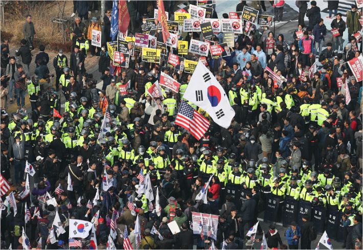 2017년 11월 8일 국회 앞에서 열린 도널드 트럼프 미국 대통령 찬반 집회 모습.. (사진=연합뉴스 제공)
