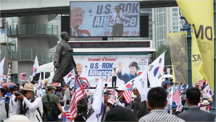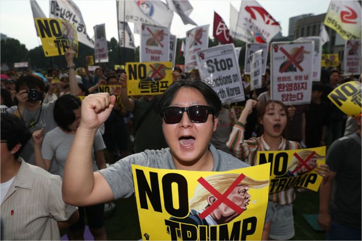 이에 맞서 트럼프 대통령의 방한을 반대하는 집회도 열렸다.
