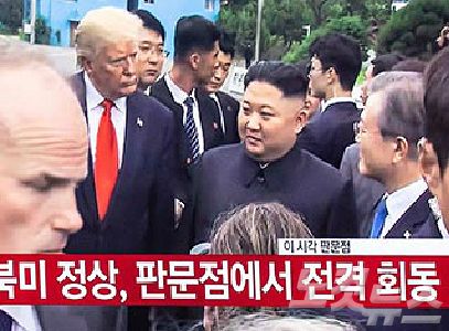 문재인 대통령과, 김정은 북한 국무위원회 위원장, 도널드 트럼프 대통령이 판문점에서 회동이 이루어진 30일 서울역 대합실에서 시민들이 관련 뉴스가 방영되고 있다.(사진=박종민기자)
