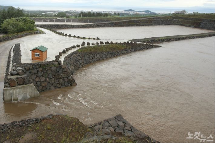 대표적인 하천 저류지는 벙문천 곳곳에 5개가 설치돼 있고, 산지천 지류를 따라서 4곳, 독사천 3곳, 한천 2곳, 토천 2곳, 화북천 1곳, 그리고 서귀포시 동홍천에서 1곳과 보목천 1곳, 서중천 1곳 등입니다.