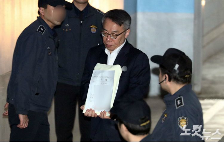 사법행정권 남용 의혹의 핵심 인물로 꼽히는 임종헌 전 법원행정처 차장이 19일 오전 서울 서초구 중앙지법에서 열린 '사법 농단' 관련 2회 공판에 출석하고 있다. (사진=황진환 기자)