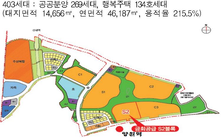 국토교통부는 10일 "서울양원지구 S2블록의 신혼희망타운 403호 가운데 공공분양주택 269호에 대해 11일 입주자 모집을 공고한다"고 밝혔다.