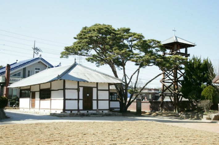 두동교회 바로 옆엔 제법 큰 소나무 한그루가 교회를 감싸고 있고 오른편에는 예배를 알리는 데 쓰이는 것으로 보이는 종탑이 있다. 이 종탑은 일제강점기 때 소실돼 2007년 새롭게 복원됐다고 전해진다.