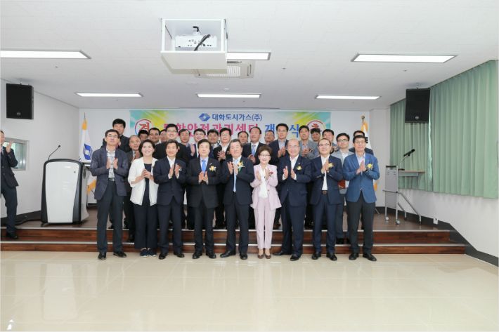 대화도시가스 통합안전관리센터 개소식에서 기념촬영하며 박수치고 있다. (사진=대화도시가스)