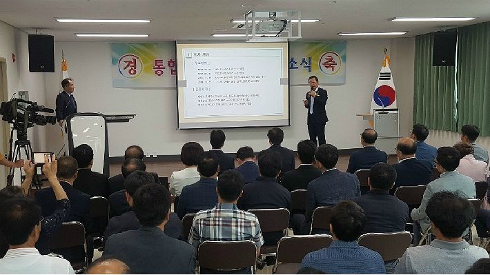 대화도시가스 통합안전관리센터 개소식에서 정표수 사장이 브리핑하고 있다. (사진=고영호 기자)