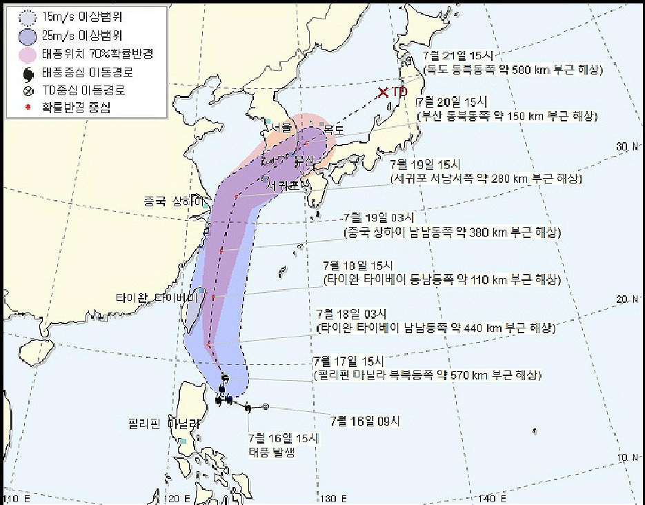 다만 기상청은 태풍이 북상하면서 열대저압부로 약화될 것으로 전망했다.