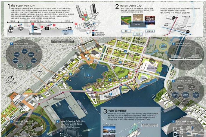 특화방안(당선작 컨셉아이디어)은 크게 부산항시티(The Busan Port City)와 부산돔시티(Pusan Dome City) 그리고 사일로 문화플랫폼 등 큰 틀에서 3개 방안으로 구성됐다(사진참조).