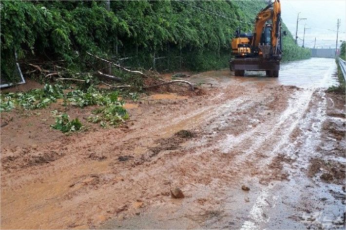 이날 오전 11시 30분쯤 강서구 가덕해안로와 접해있는 야산에서 토사가 흘러내려 차량 통행이 전면 금지됐다.
