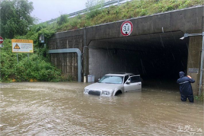 이날 오후 4시쯤 금정구의 한 지하차도가 침수되면서 이 곳을 지나던 차량이 물에 잠겼다. 차량에 타고 있던 3명이 급히 밖으로 빠져 나와 인명피해는 발생하지 않았다.