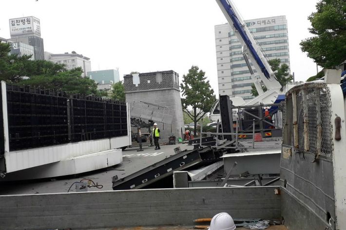 이처럼 옥외 LED전광판이 이른바 '돈 먹는 하마'로 전락하자 수원시가 급기야 중장비를 동원해 철거에 들어갔다. 수원시의 '옥외 LED전광판'은 설치된지 10년만에 결국 고철덩어리로 전락한 꼴이 된 것이다.