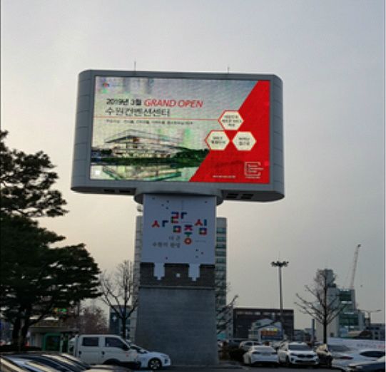 수원시는 지난 2008년 9월30일 시청 본관 앞 서쪽편 주차장 끝자락에 넓이 12m 높이 8m에 이르는 옥외 LED전광판을 설치해 시정홍보를 펼쳐 왔다.