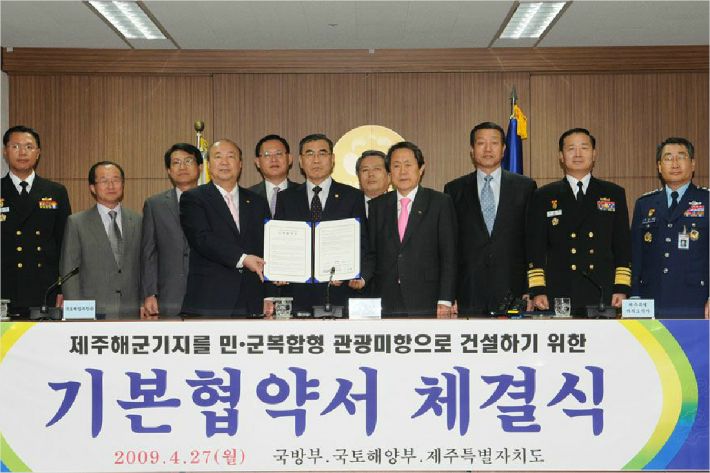 지난 2009년 4월 27일 국방부,국토해양부,제주도가 제주해군기지를 민군복합형 관광미항으로 건설하기 위한 기본협약서를 체결했다. (사진=자료사진)