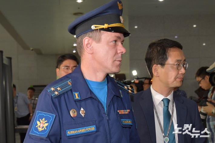 니콜라이 마르첸코 러시아 공군 무관이 26일 러시아 군용기의 독도 영공 침범과 관련한 국장급 실무협의에 참석하기 위해 서울 용산구 국방부로 들어서고 있다.