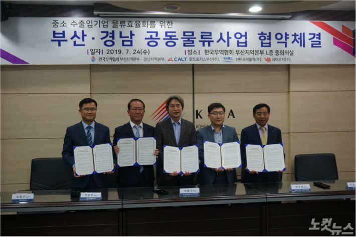 한국무역협회 부산지역본부와 경남지역본부는 24일 칼트로지스부산(주), 선민국제물류(주), 케이로지(주)와 부산·경남 공동물류사업'추진을 위한 업무협약을 체결했다.