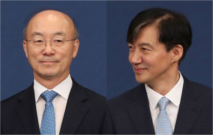 김조원 신임 청와대 민정수석과 이임하는 조국 전 민정수석 (사진=연합뉴스)
